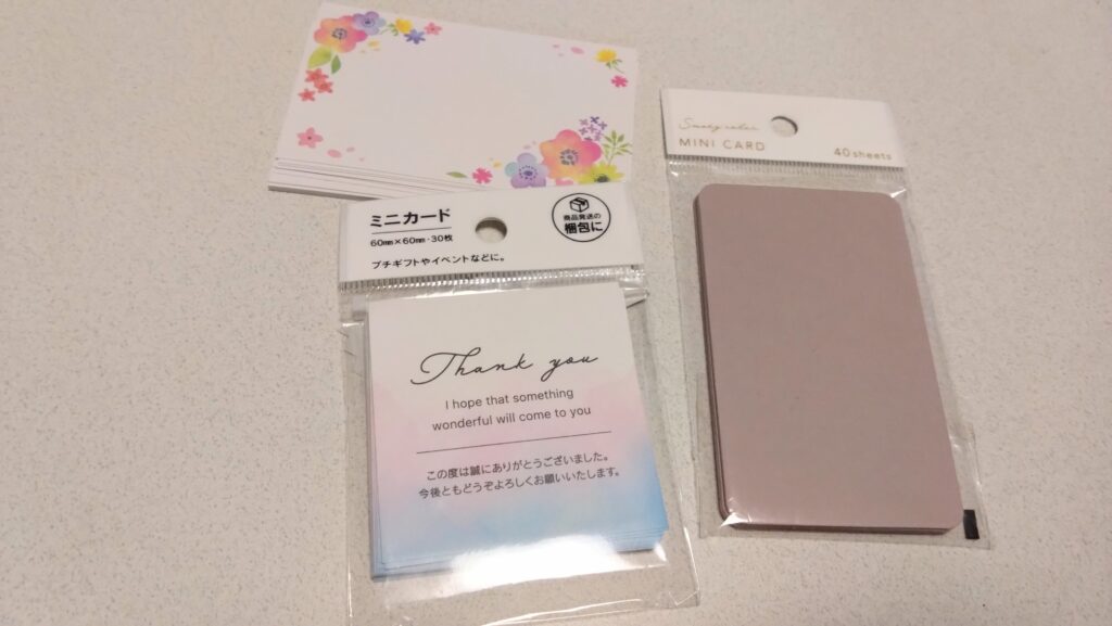 100均には、印刷済みのオシャレなサンキューカードが売っています。