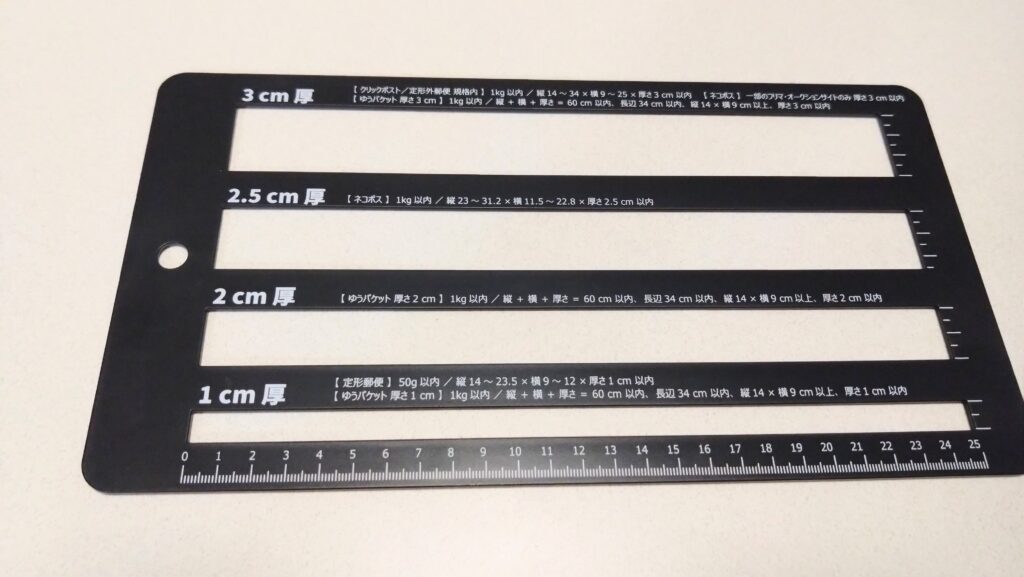 発送方法の中には〝3cm以内〟などの厚み制限があるものが多く、ほんの数ミリの差で送料が大きく変わることがあります。