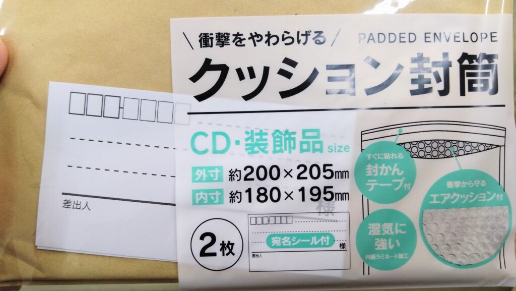 クッション封筒は少し割高かもしれませんが、プチプチ+封筒を別々に購入するよりも手軽で、梱包を手間も減らすことができます。