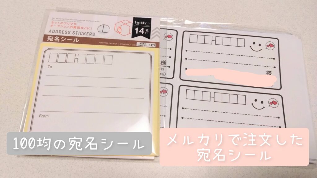 私も最初は100均の宛名シール(写真左)を使っていました。